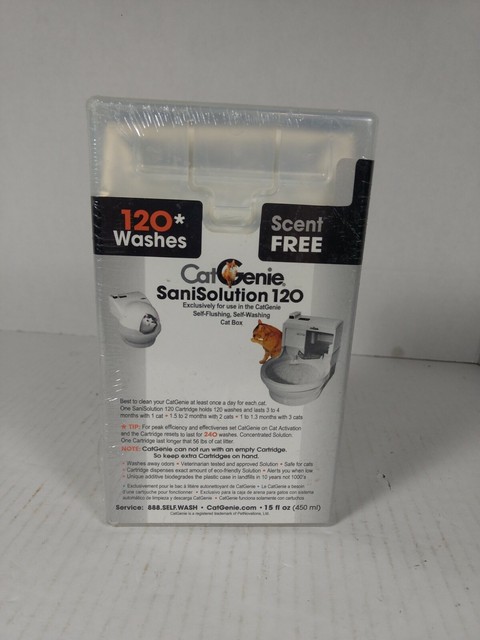 Keep your catgenie 120 running properly same ingredients used by veterinarians to clean their exam rooms alerts you when sanisolution is low The sanisolution cleaner inside the sanisolution cartridges is concentrated and designed to. Автоматический туалет catgenie 120 крышка genie dome коврик genie mat дверца genie door картридж sanisolution 120 fresh scent картридж sanisolution 120 scent free порошок. Lot of 2 catgenie 120 unscented sanisolution smartcartridge. 4.0 из 5 звездоч.4 оценок товара.